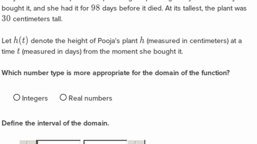 But why not think about. And the inputs here this is t and it represents days and if i input t the number of days into the function h it ll output the height of the plant. Didn t find what you. Determining domain word problem real numbers up next.